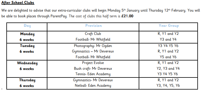 For all clubs please book via ParentPay. Booking must be made by 9am the day before and clubs have limited numbers so may get fully booked.