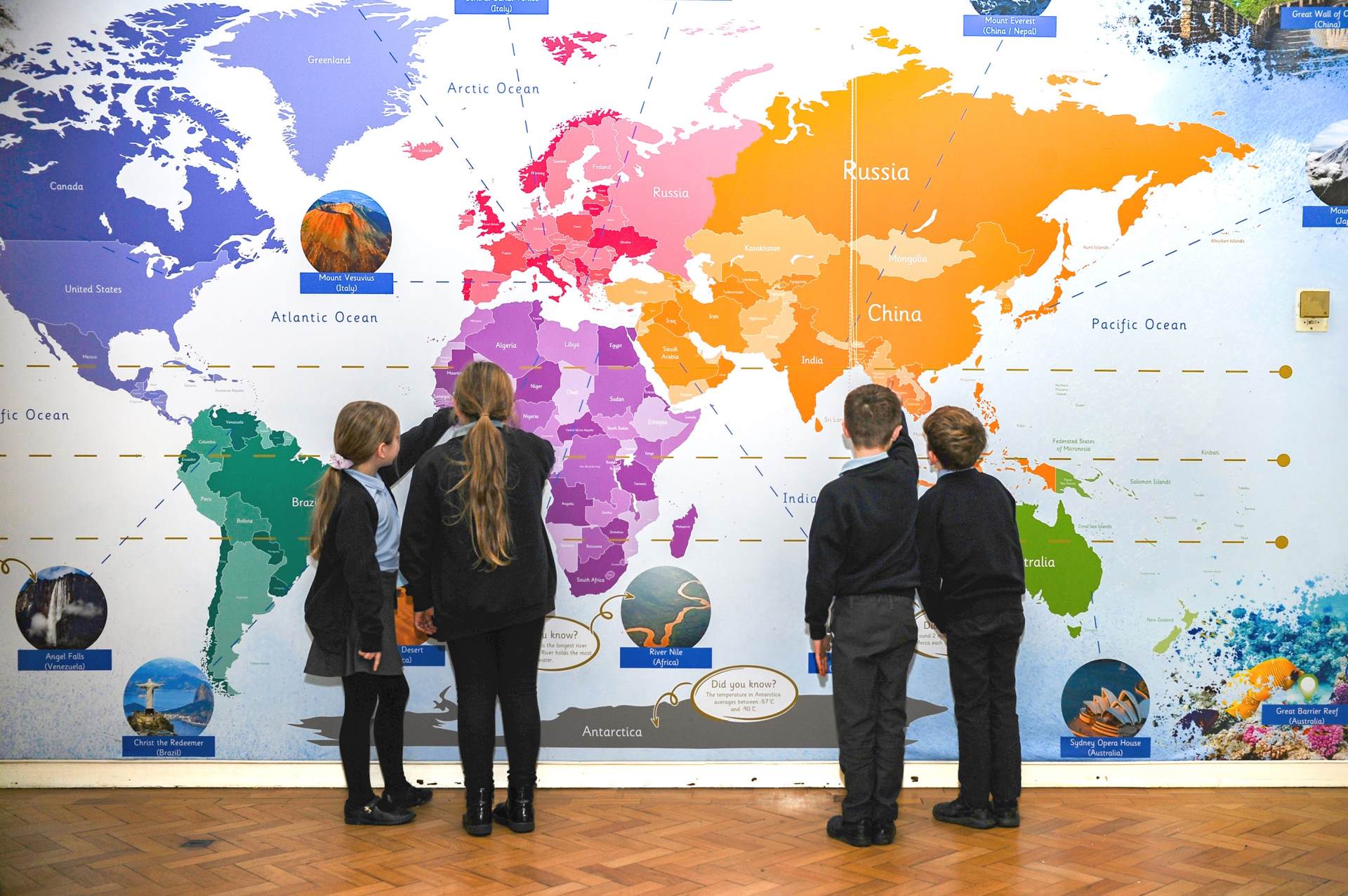 - Large Geography display in hall allowing greater awareness of geographical features and allowing access by all children and classes.