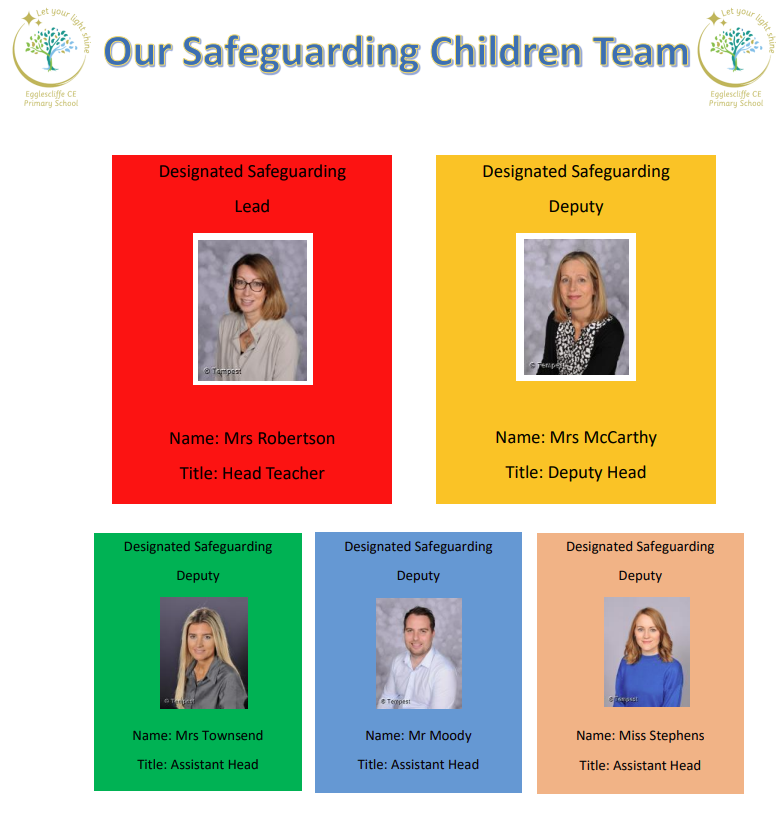The safeguarding team is in charge of keeping children safe at home and at school. They are called Designated Safeguarding Leads and Deputies.
